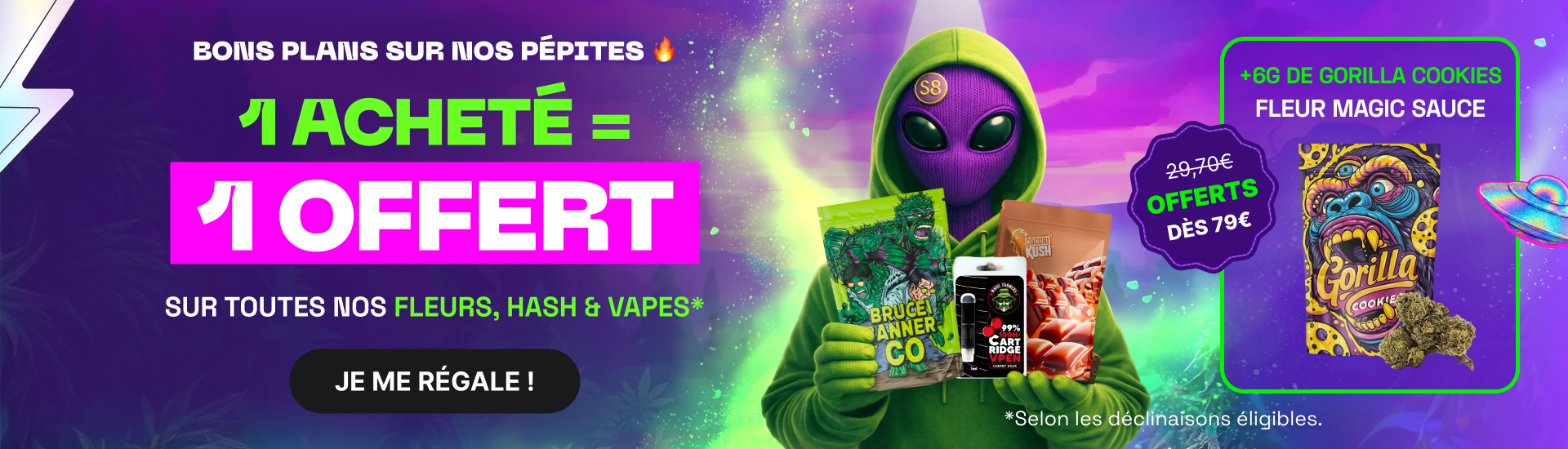 OFFRE DE LA SEMAINE : 1 ACHETÉ = 1 OFFERT SUR TOUT (HORS EXCEPTIONS)    6G DE GORILLA COOKIES OFFERTS DÈS 79€    OFFRE DE LA SEMAINE : 1 ACHETÉ = 1 OFFERT SUR TOUT (HORS EXCEPTIONS)    6G DE GORILLA COOKIES OFFERTS DÈS 79€